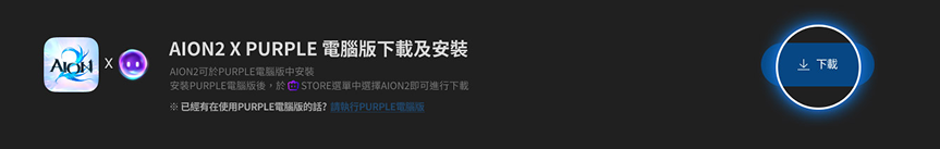 安裝PURPLE電腦版後,於STORE選單中選擇AION2即可進行下載※ 已經有在使用PURPLE電腦版的話? 請執行PURPLE電腦版