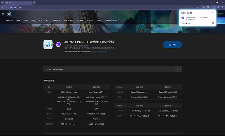 1. 於下載頁面中點擊[下載]按鈕進行PURPLE電腦版下載